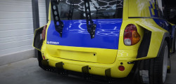 The vehicle, which is based on the first generation Multipla before the facelift (1998-2004), has had its doors reduced from five to three, and its bumpers and fenders have been reduced to accommodate the new aero. The centerpiece is the Multipla's much wider stance, thanks to the geometric front and rear fenders that include DTM-style embellishments.