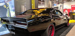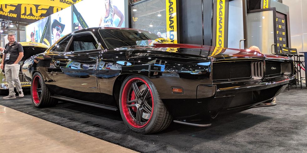 It has been equipped with Boze alloy wheels and improved Baer brakes with six-piston calipers at all four corners to finish the Pro-Touring appearance, as well as a Magnaflow exhaust. This Dodge Charger is now on display at the Magnaflow booth at SEMA. The headrests on the front seats were removed for a throwback low-back bucket design, and the inside was refurbished by New York business Gillin Auto Interiors.