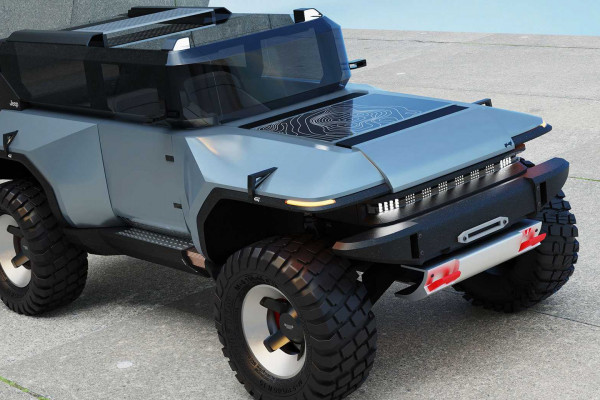 The next-generation Jeep Wrangler, designed by Arjun Kurunji, is unlike any other Jeep. Kurunji's ideal Wrangler is only available as a two-door vehicle, with a unique front end that includes an LED light bar, a winch, and tow hooks.