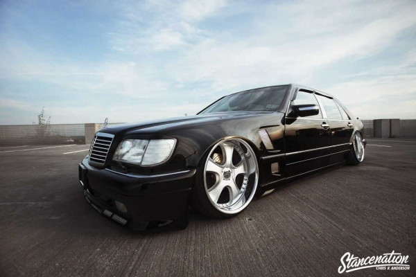 Instead of going on a set of coil springs, or air cushion systems, Macaulay installed four hydraulic dampers, where each pump has its own button. The machine can be lifted up to the standards of an SUV, or completely knocked on its belly! On the final gloss black paint, Mercedes-Benz adds more drama to this S500.