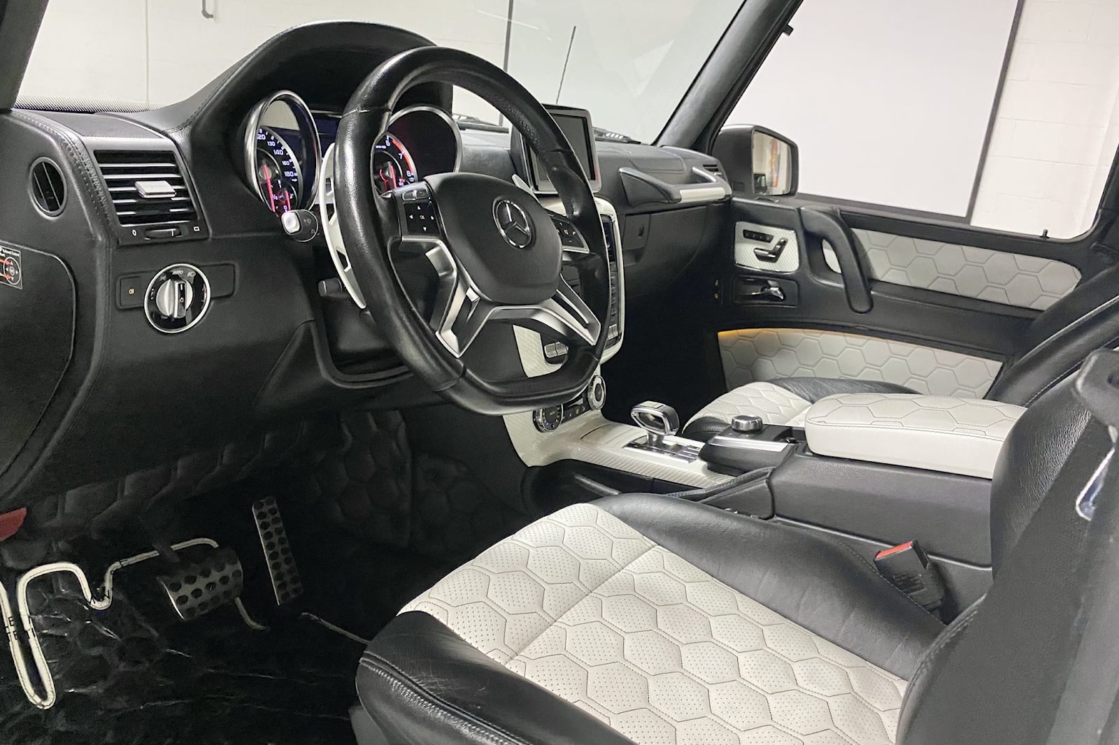 Along with the 700 hp, the Brabus B63S-700 engine combo produces 708 lb-ft of torque. Brembo brakes all six wheels, which are wrapped in off-road appropriate 37-inch Nitto Ridge Grappler tires. The G63 6x6 has only 8,000 miles on it and a clean Carfax record. Nevertheless, because this vehicle was imported under the "show and exhibition" law, it cannot perform all of the functions that a typical consumer vehicle can.