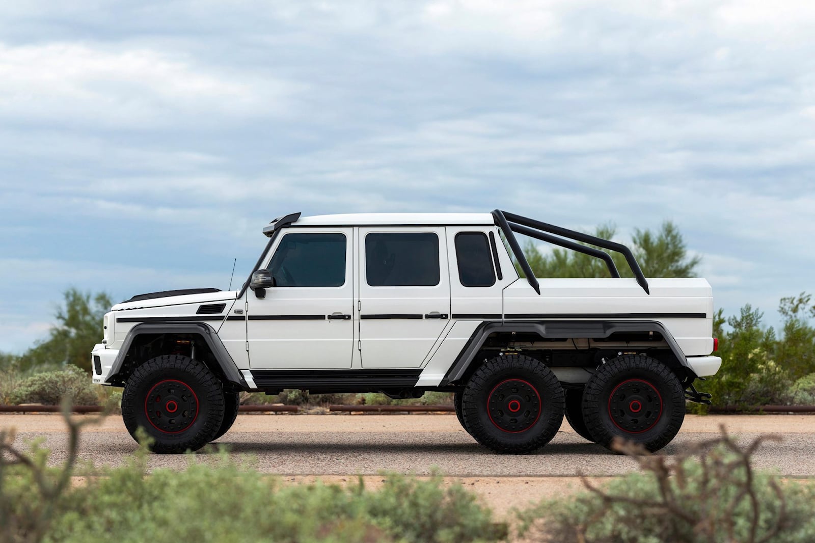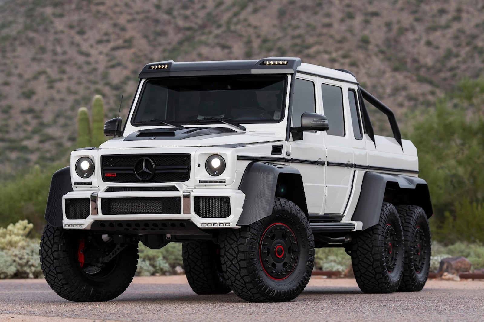After starting as an online clearinghouse for automobiles, Bring A Trailer has evolved into a full-fledged auction platform. According to Bring a Trailer, this 2014 Mercedes-Benz G63 AMG 6x6 is one of 100 produced in Graz, Austria. It's painted white and comes with a Brabus engine that puts out 700 hp to all six axles. As of this writing, the current price is $800,000.