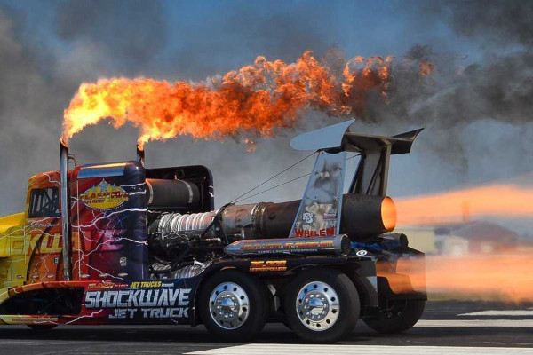 At least that is seen in a video recently uploaded on the YouTube channel. It is clear that this truck named Shockwave is considered the fastest in the world, equipped with three Pratt & Whitney jet engines J34 - 48, producing not less than 36,000 hp.