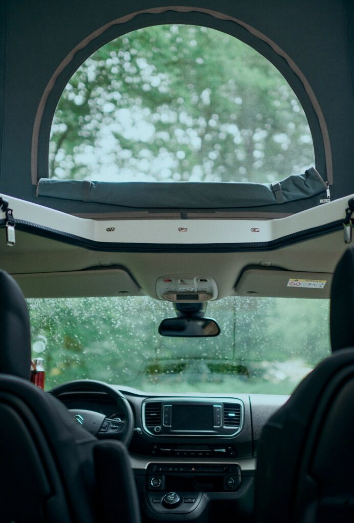 This roof isn't just for show; it houses a cozy bed up top, perfect for a duo. The second-row bench has an ingenious trick up its sleeve: it can morph into another snug two-person bed or be effortlessly removed to open up more space.