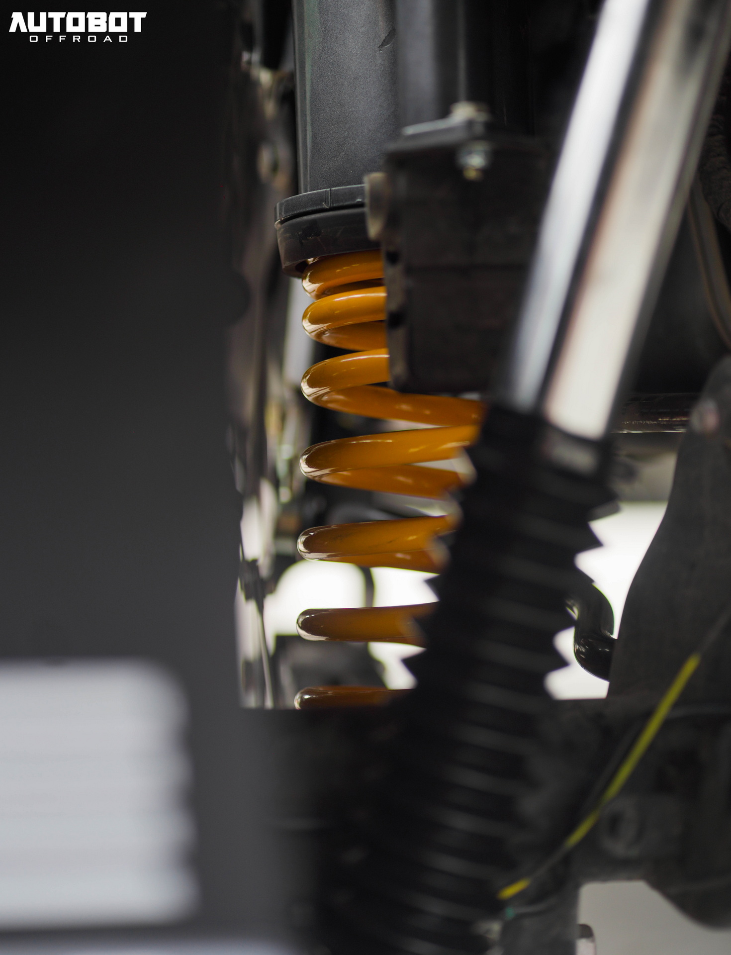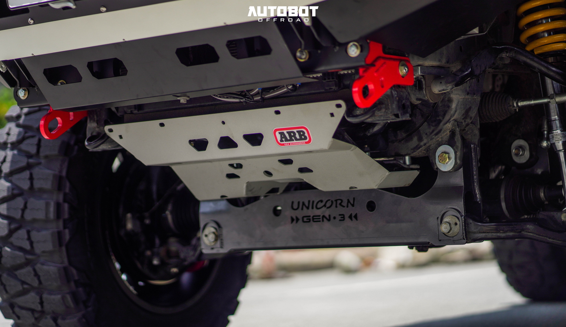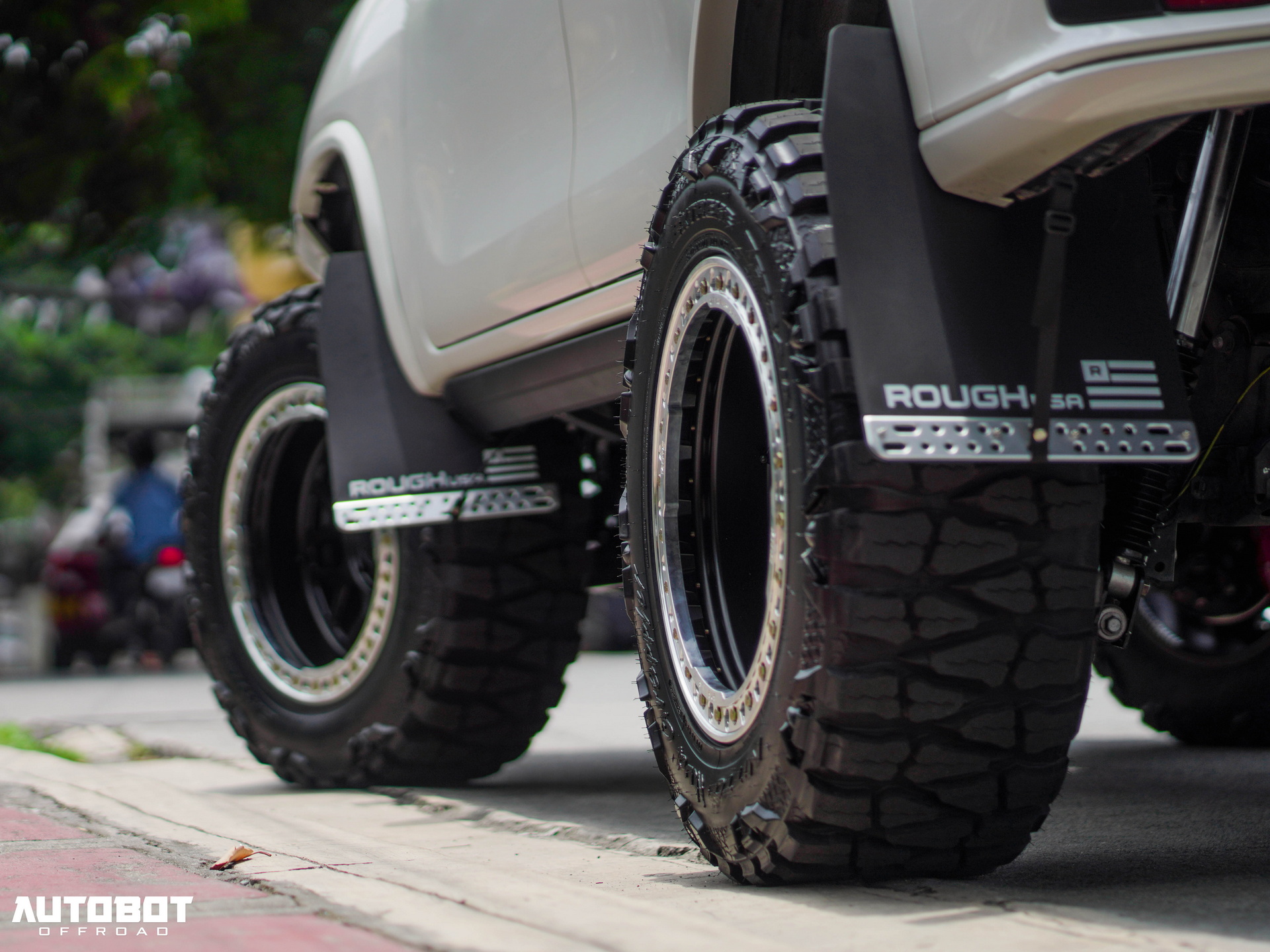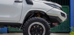 The enormous 6-inch suspension lift by Unicorn is the most noticeable modification. The Fortuner's ground clearance is significantly boosted when mounted on 20-inch KMC Grenade Crawl alloy wheels with the rugged 35-inch Nitto Mud Extreme tires. Old Man Emu upper control arms, Profender long-travel shocks, and a flexible Hardrace Panhard rod at the rear make up the improved suspension.