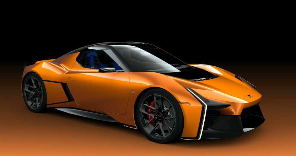 Toyota has painstakingly sculpted the cutting-edge silhouette of this GR-branded prototype to minimize aerodynamic drag, making it look sleek and futuristic. The transition from the molded rear quarter panels to the small fins holding the slim LED taillights benefits aerodynamics. At the back, you can't help but notice the unusual ducktail spoiler and dramatic diffuser, which give the car an edgy and dynamic aspect.