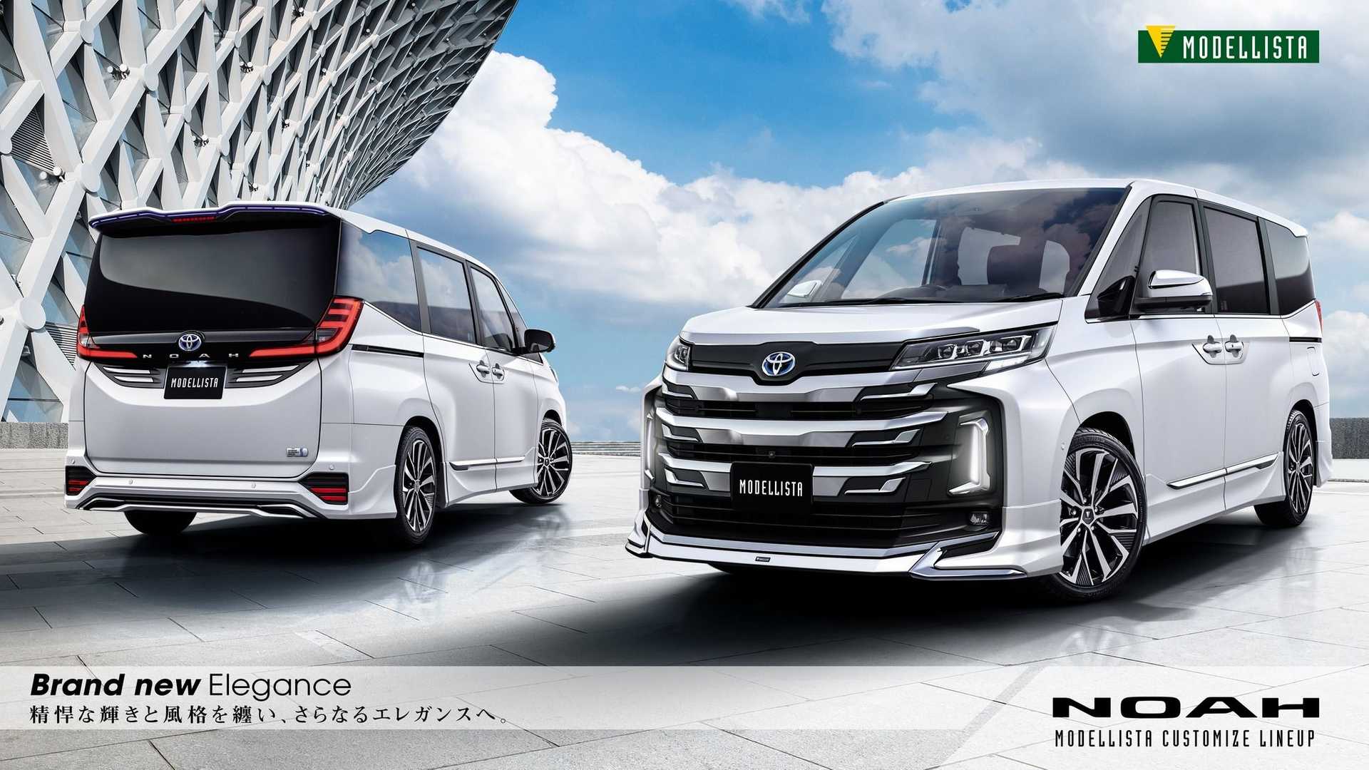In comparison to previous-generation vehicles, a hybrid powertrain with a 1.8-liter engine and an improved electric motor and battery pack is available. Toyota's in-house tuners TRD and Modellista provide upgrades for the new Noah and Voxy. Everything from body modifications and 18-inch wheels to door handle covers and extra outside illumination is available. Buyers may also have a JBL sound system as well as an inflatable bed installed on the interior.
