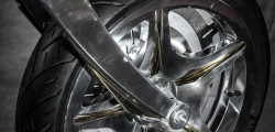 Billet aluminum wheels are one of the few elements not hand-crafted. Additionally, the brake discs and calipers are made-to-order components designed exclusively for this project.