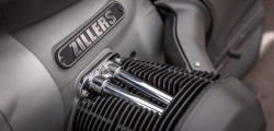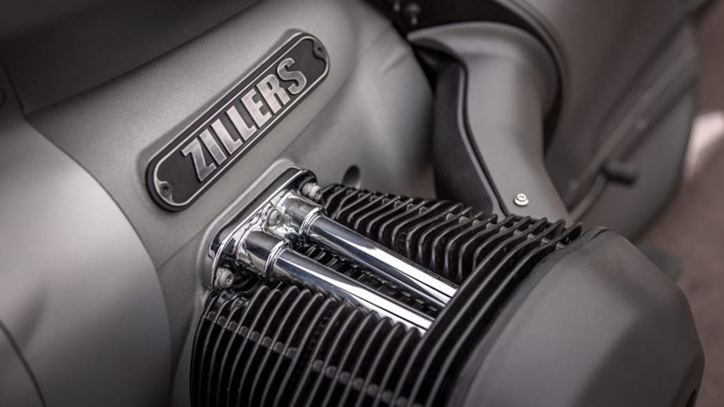 As a consequence, thus customized BMW R18 is not supported by a kickstand but rather by spikes attached to the skid plate. Zillers appears to have left the R18's powerful engine alone. The engine is a 1.8-liter flat-twin with air cooling that produces 91 hp and 116 lb-ft of torque, and propels the R18 to a max speed of 118 mph.