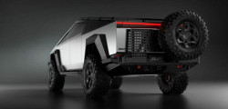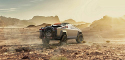 This kit raises the Cybertruck's ground clearance to 19.5 inches. Additionally, heavy-duty steel front and rear bumpers are offered at $2,995 and $3,995, respectively, with the rear bumper compatible with extras like a trailer hitch receiver, rock sliders, swing arms, and a spare tire carrier.