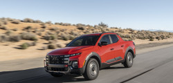 The 2025 Santa Cruz is a little more rugged than its predecessor, according to the latest news from the New York International Auto Show. “More vertical lines and redesigned headlamps bookend a menacing new grille incorporating larger chambers,” said Brad Arnold, senior design manager at Hyundai North America.