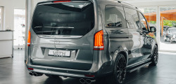 In addition to the springs, a pair of 20x9" VÄTH wheels with 255/40 Michelin Pilot Sport 4S tires are mounted on all four corners. The tuner has also built a stainless steel sports exhaust system for the Mercedes-Benz V-Class, which includes polished tailpipes.