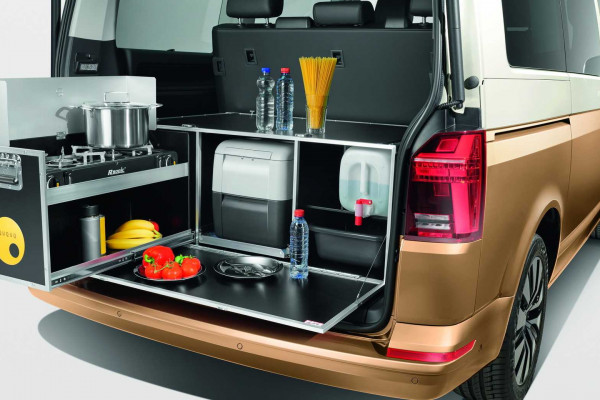 Finally, there's the top-of-the-line BusBox, which works with the Volkswagen Caravelle T5, T6, and T6.1 models. A bed, a mattress, a cooking area (with room for a two-burner stove), an extensible storage area, and a water supply are all included. It costs £3,340 ($4,520) to buy.
