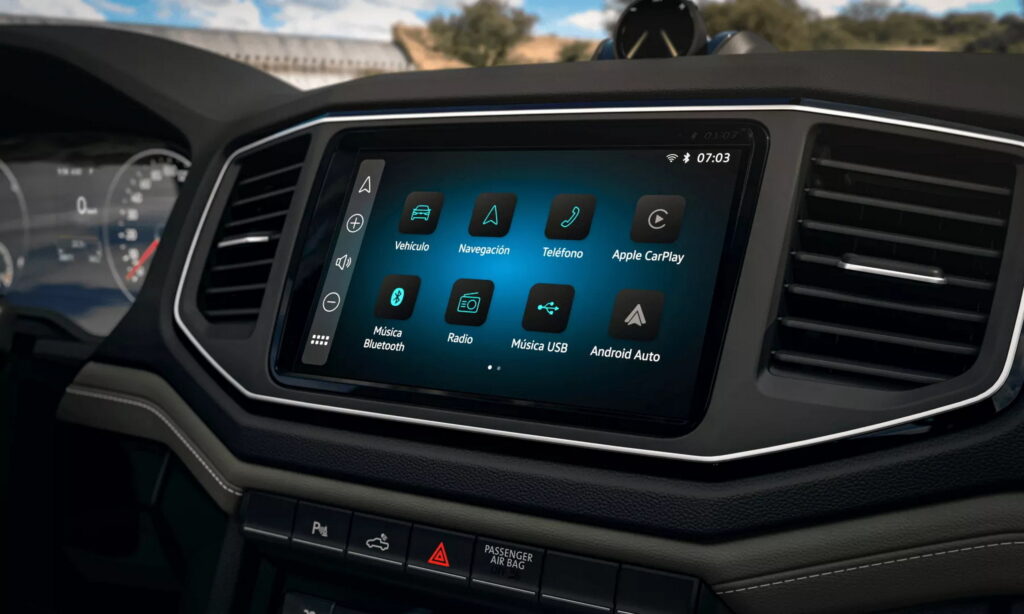 All eyes are on the restyled front end. Look closer at the redesigned grille to see that it now houses a full-width LED bar and contemporary headlamps. The intakes are evocative of the smaller VW Saveiro truck, and the bumper is much more contoured.