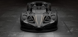 Many of the Evanora's major mechanical parts are entirely visible. For instance, instead of a standard hood, the front end features open panels that show a complicated carbon fiber suspension system that looks similar to what you'd see in a modern Formula 1 vehicle.