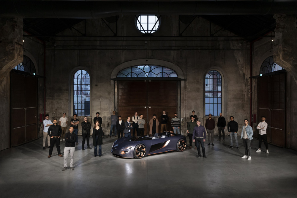 The pictures show a front end with a set of distinctive arrow-shaped headlights mounted together with a grille. Next is a setup that repeats itself on the rear of the vehicle. Featuring a single door on the left has a glass panel, allowing the driver to get "a closer to the road experience."