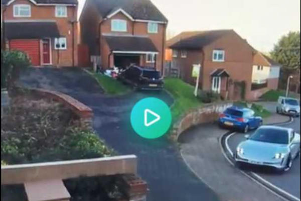 A badly designed driveway plus a Porsche Taykan’s instant torque equals expensive car damages.