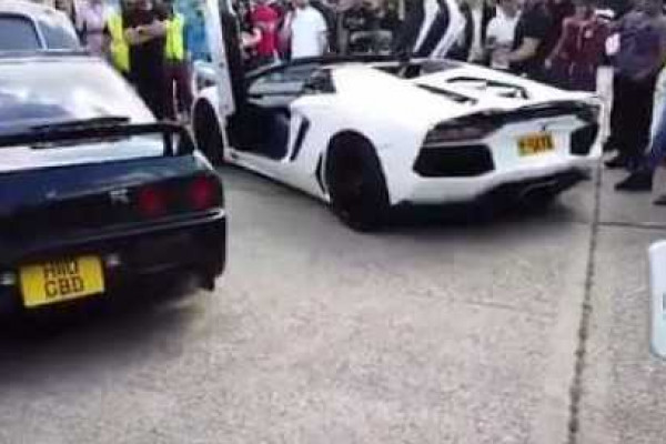Flame Spitting Battle: Aventador vs Skyline R33
