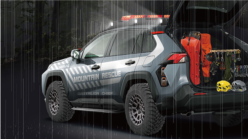 Inspired and built upon the 2020 RAV4 "Adventure Gear" concept, but it has lights and exciting graphics, the SUV features inscriptions like "Mountain Rescue" and "Battalion Chief" written on its side. It also got big chunky tires, a variety of gadgets for safer trips on the snowy mountains.