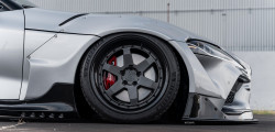 There's also a dynamic lip spoiler and a towering rear wing included. A set of custom wheels is the last touch. Strasse produced the wheels, which are 19x10 on the front and 19x12 on the back. Gloss silver, which is the standard color for the Supra, looks great with the new widebody kit. Honestly, we're completely in love with this modofied Toyota GR Supra.