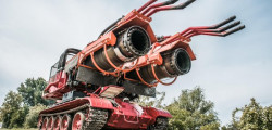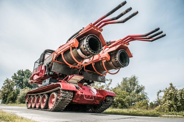 You might want to witness a Hungarian firefighting tank in action if you're a fan. According to Hungary's Total Car, Big Wind, or Windy as it's also known, was created in 1988 from the chassis of a World War II-era Russian T-34-85 tank. Thereafter, a pair of MiG-21 fighter-derived R-25 jet engines with a combined thrust of 27,000 lbs were installed. Every second, they emit 4,591 cubic feet of exhaust gas, into which 6 nozzles spray 220 gallons of water.