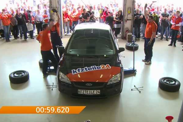 Germans from the video appeared on YouTube recently, and have achieved a new performance, they changed all four wheels of a car without the help of power tools in less than 1 minute.