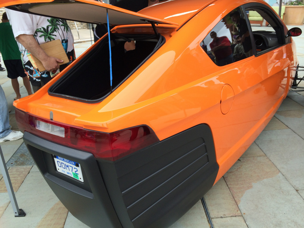 This weird thing is called CarElio and it is sold for $6,800. Elio Motors is a company from Arizona that unveiled its P5 at Los Angeles Auto Show. Their solution for a cheap US-made car is simple: remove a wheel and equip a smaller engine.
