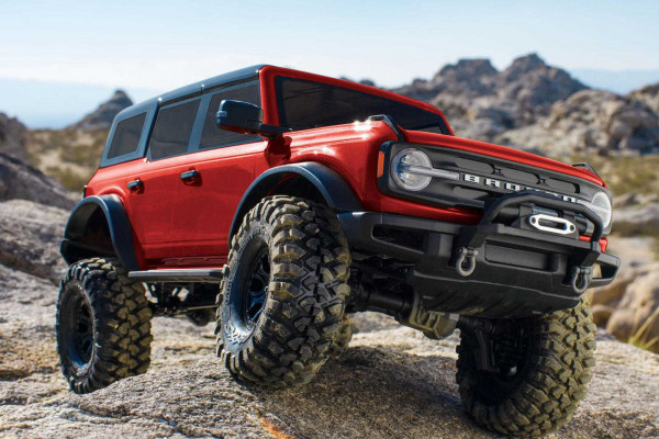 The chassis is created from heavy-duty steel frame rails, aluminum scale shocks, a dual battery tray, and heavy-duty steel links. The TRX-4 2021 Ford Bronco brings along portal axles, remote locking differentials, a high/low transmission, and a twin friction plate slipper clutch to support the truck’s maximum off-road performance.