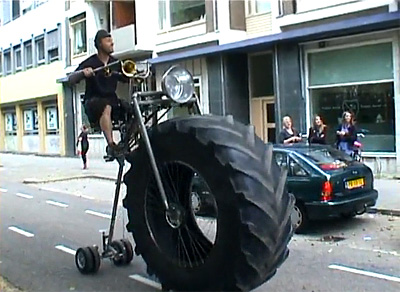 When a bike meets a tractor, you get the Monsterbike! It was created by a student and it represented his graduation work.