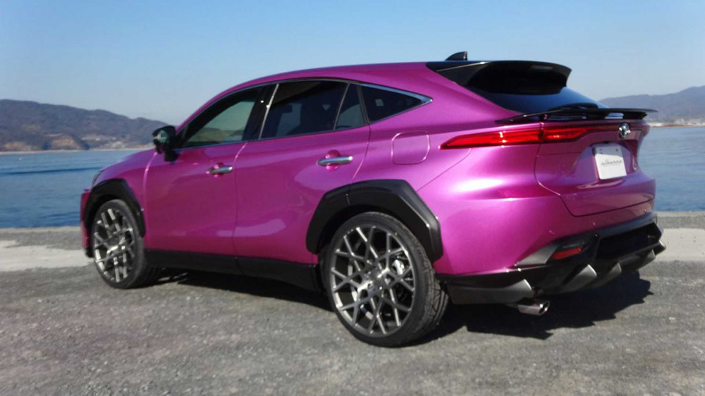 Toyota's edgy changes continue on the sides, with flared wheel arch extensions coated black. A pair of customized wheels have also been installed on the SUV. A roof spoiler, a modest decklid spoiler, and an aggressive rear diffuser are among the other adjustments. A pair of center-exiting tailpipes can also be ordered.
