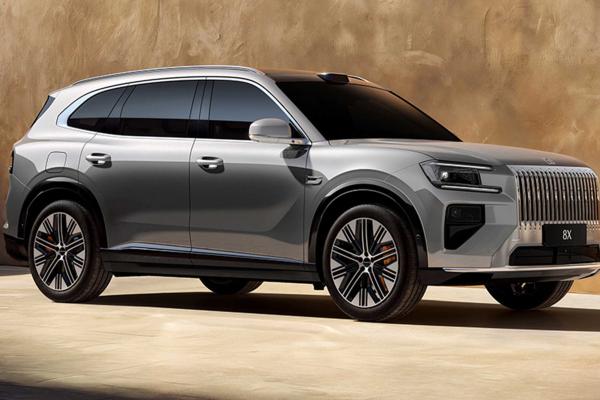 The 8X comes in two versions: a standard model and a sportier one. The regular version looks a lot like the bigger 9X, with a chrome grille, sharp headlights, and a bold front bumper.